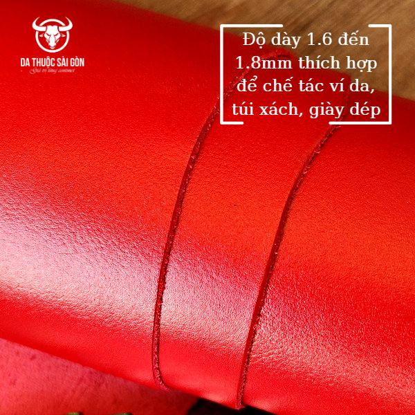 Đặc biệt da bò nappa màu đỏ tươi thường có độ dày 1, 4- 1,6mm kích thước từ 15-20 pia nên rất dễ để mọi người tạo dáng cho sản phẩm. Không chỉ được nhuộm màu đỏ tươi mà da bò nhập khẩu còn mang đến nhiều màu sắc khác như: xanh navy, vàng, nâu, cam…. Từ đó mọi người có thể thoải mái lựa chọn chất da để tạo nên những vật phẩm handmade theo ý muốn. Chỉ cần khéo léo bạn có thể dùng chất da này để tạo nên túi xách, dây da đồng hồ, balo, ốp điện thoại… đều khá thời thượng.